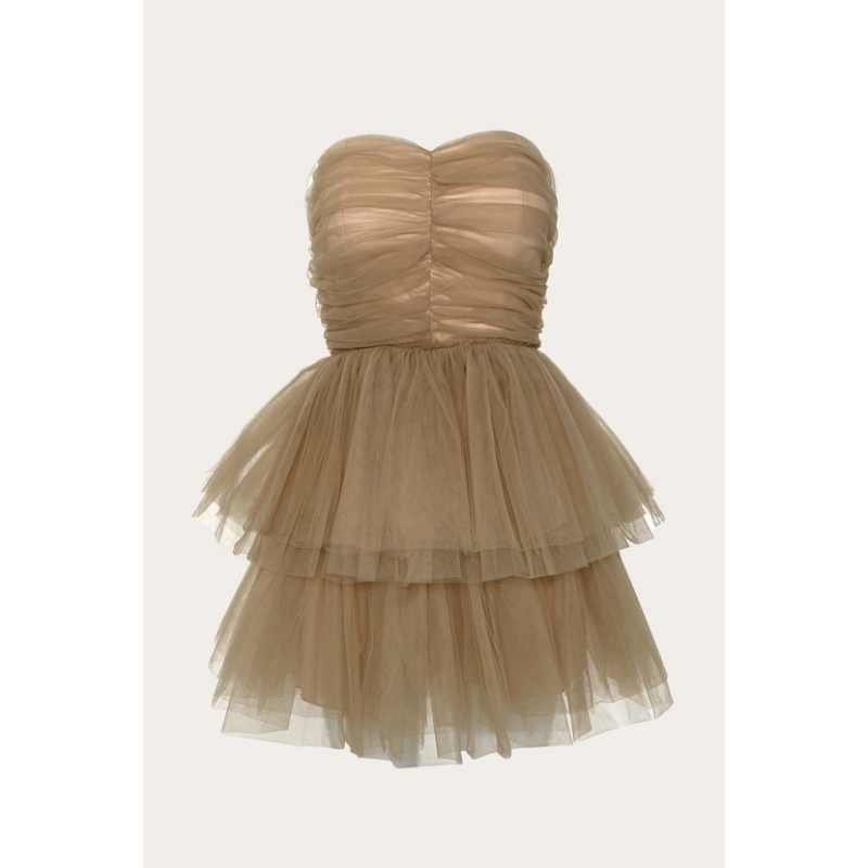 ABITO IN TULLE A BALZE CON CORPETTO A FASCIA. ZIP INVISIBILE LATERALE