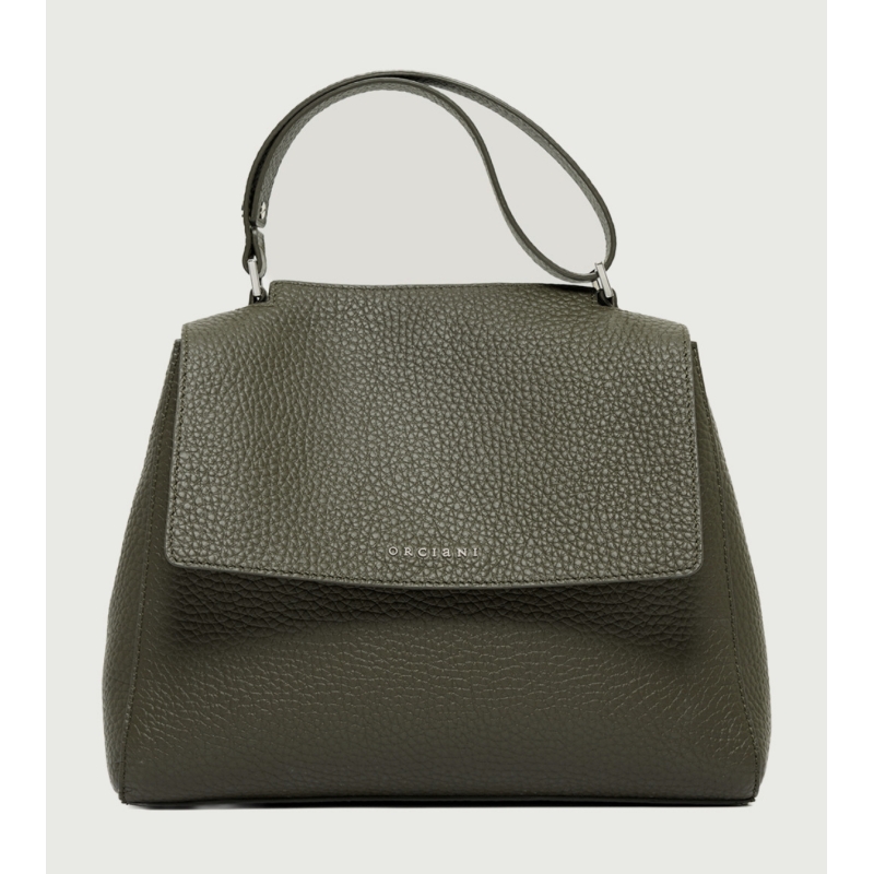La morbida pelle martellata e l'apertura a scomparsa consentono di accedere comodamente all'interno della borsa senza sollevare la patta