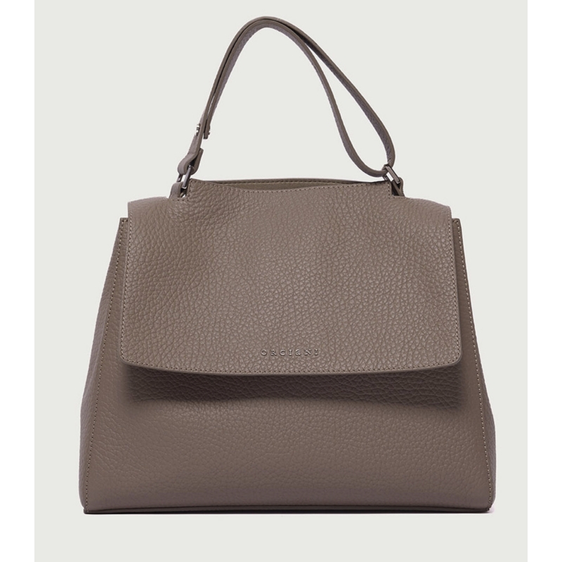 La morbida pelle martellata e l'apertura a scomparsa consentono di accedere comodamente all'interno della borsa senza sollevare la patta.