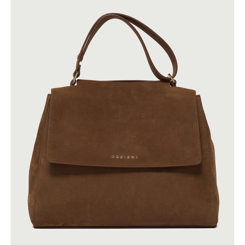 Iconica borsa Sveva misura media realizzata in pelle nubuck, morbida e vellutata al tatto. Dotata Di una tracollina di servizio regolabile che consente di adattarsi perfettamente ad ogni esigenza. Può essere indossata a mano, a spalla o cross-body, Sveva è capiente e perfetta per il quotidiano.