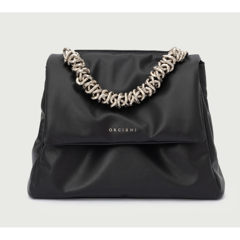 Sveva M è la dimensione perfetta per chi cerca praticità senza rinunciare allo spazio, arricchita dal dettaglio distintivo del manico chain, un elemento che esalta l'artigianalità Orciani, con la sua lavorazione sofisticata e intrecciata, per un tocco di esclusività.