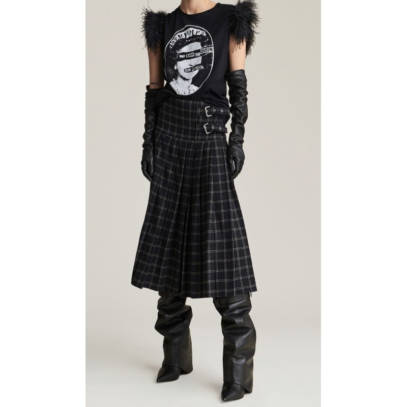 LA GONNA GWEN GIOCA CON LE ISPIRAZIONI SCHOOL GIRL IN CHIAVE CONTEMPORANEA. REALIZZATA IN FLANELLA DI MISTO COTONE, PRESENTA UN MOTIVO CHECK ALL OVER E UN DESIGN A PLISSÉ CHE CREA MOVIMENTO E STRUTTURA. I CINTURINI LATERALI CON FIBBIE REGOLABILI AGGIUNGONO UN TOCCO UTILITY E GRINTOSO AL DESIGN.