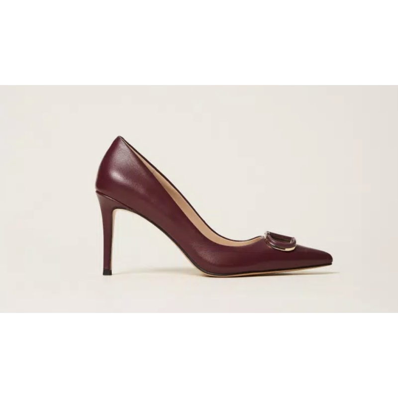 Décolleté in pelle con Oval T smaltato in tono, punta sfilata, tacco a stiletto e fondo in tunit.