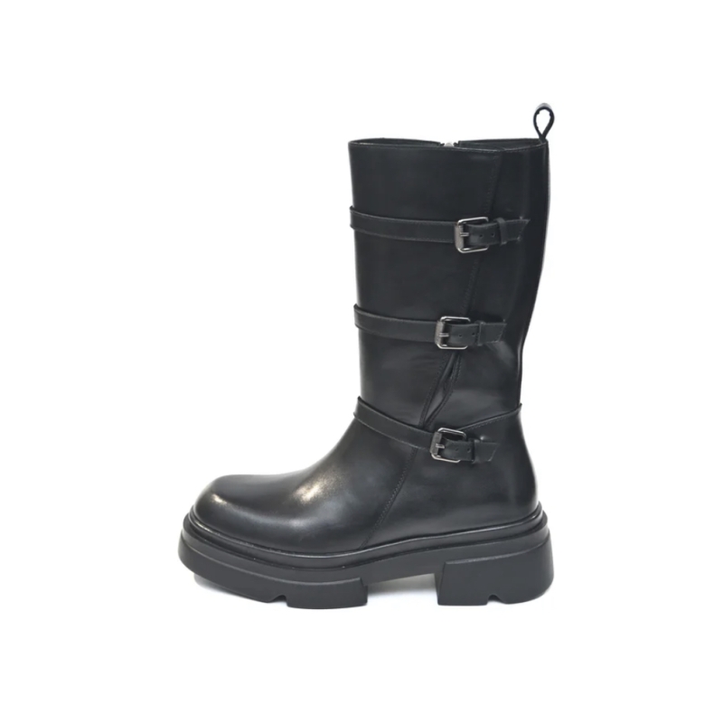 Stivaletto in pelle con fibbie,fondo in gomma 50mm