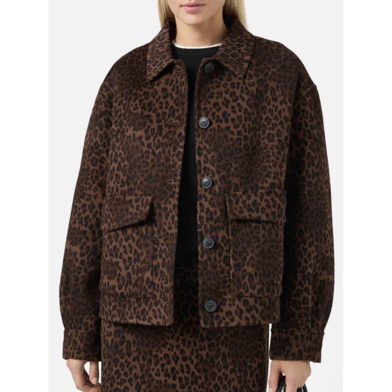 Bonnibell è la crop jacket cucita a mano dal carattere fashion: silhouette over e tessuto double con stampa leopardata per un look deciso e contemporaneo. Perfetta su denim, gonne e abiti midi.