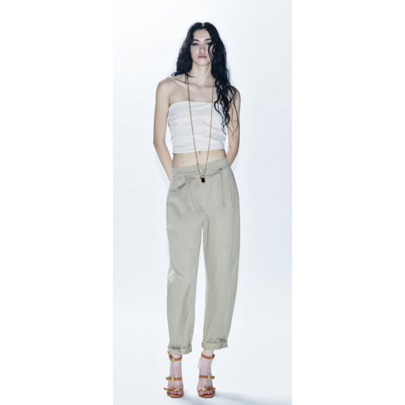PANTALONE PEGGED A VITA ALTA CON PINCES.