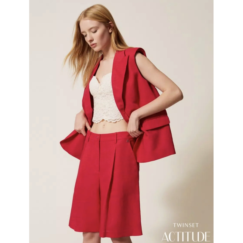 Bermuda collezione Actitude in tessuto di lino e viscosa. Ha pinces davanti, tasche alla francese, chiusura con zip e bottone, tasche con doppio filetto sul retro, linea morbida.