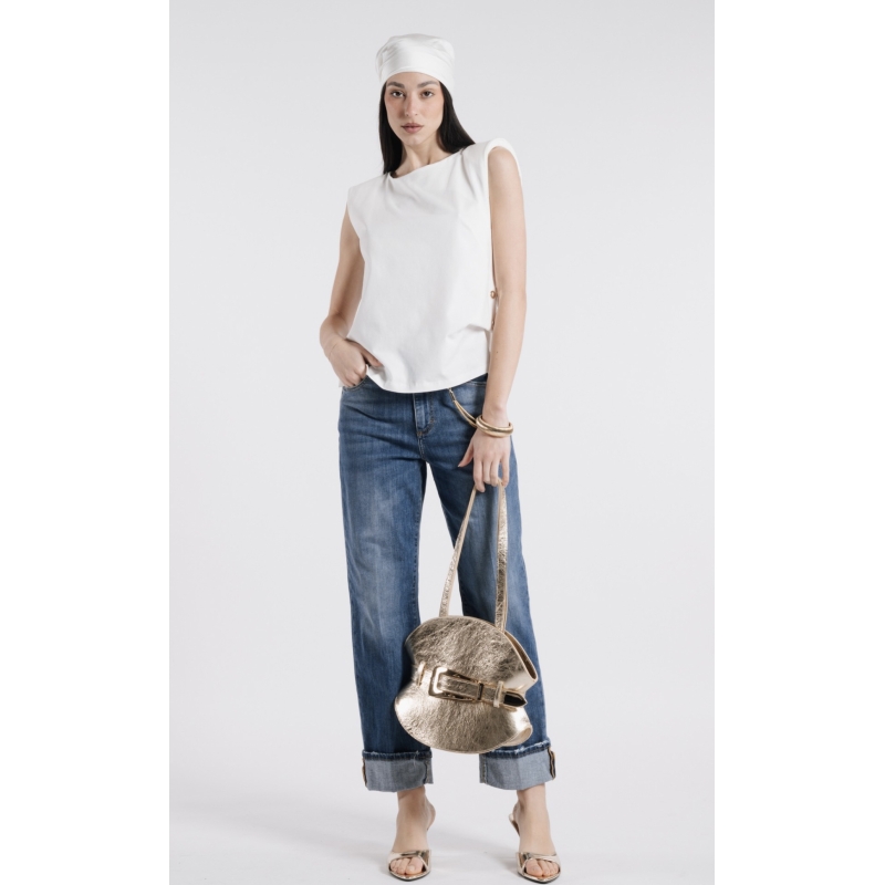 T-SHIRT CON FOULARD-BANDANA, SPALLINE E BOTTONI METALLICI DORATI